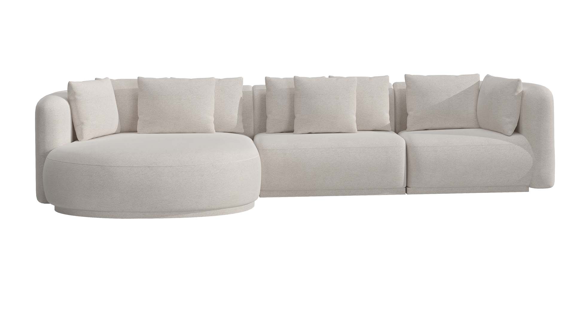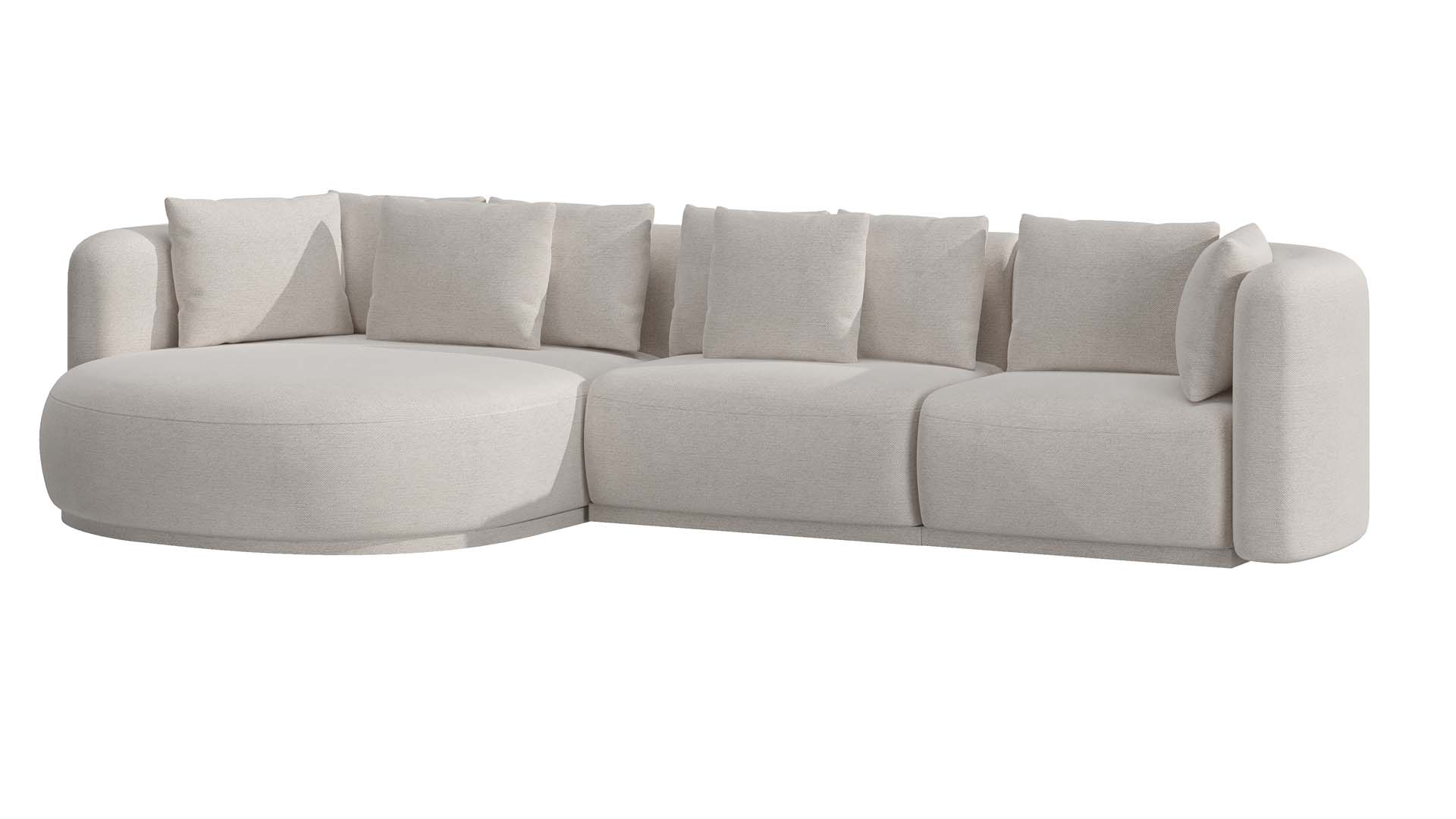 Encosto: almofadas soltas, enchimento em pluma de ganso sintética.